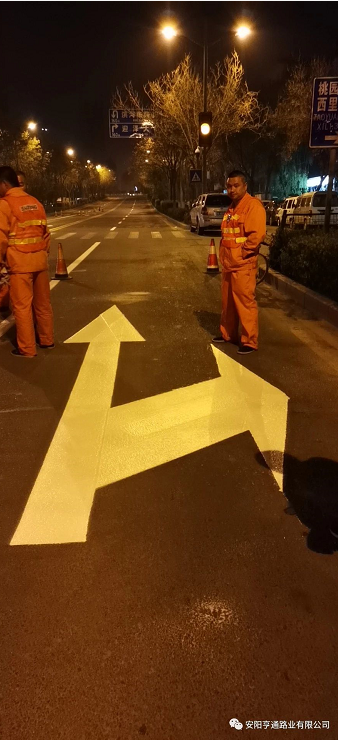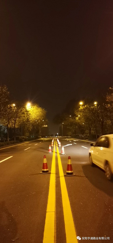 此次標(biāo)線(xiàn)施工,為不影響市政公路通行,均在夜間車(chē)流量較少的時(shí)候進(jìn)行施工,在施工安全第 一的前提下,亨通的同事們保質(zhì)保量的用高 效率完成了標(biāo)線(xiàn)試驗(yàn)段施工,該試驗(yàn)段被項(xiàng)目部評(píng)為施工模范。